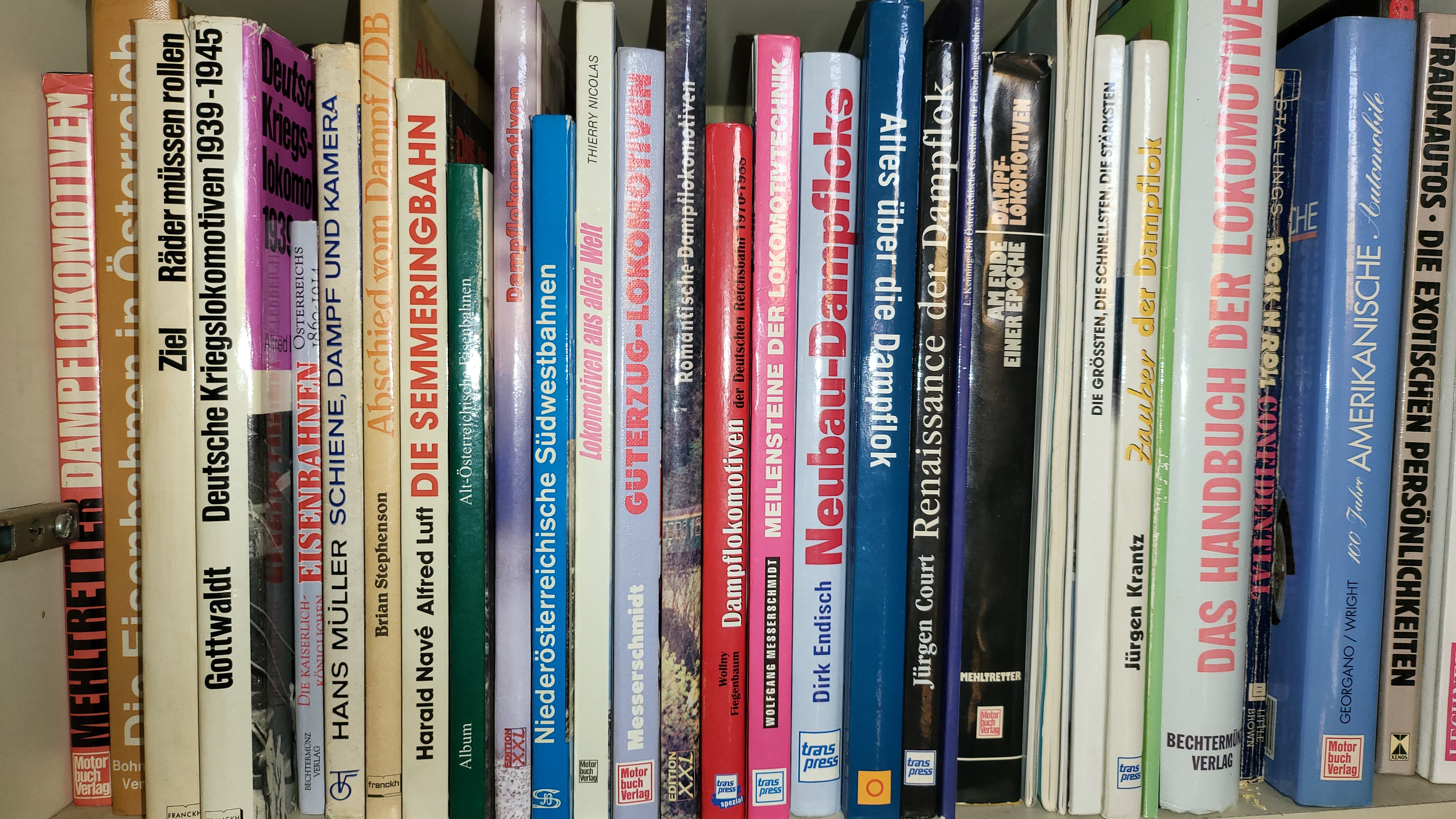 Seinen Interessen folgend finden sich Bücher über US-Cars, Musik der 50er und 60er und jede Menge Eisenbahnliteratur. Ich biete diese auf Willhaben und anderen Plattformen an. Wenn jemand daran Interesse hat, bitte melden!